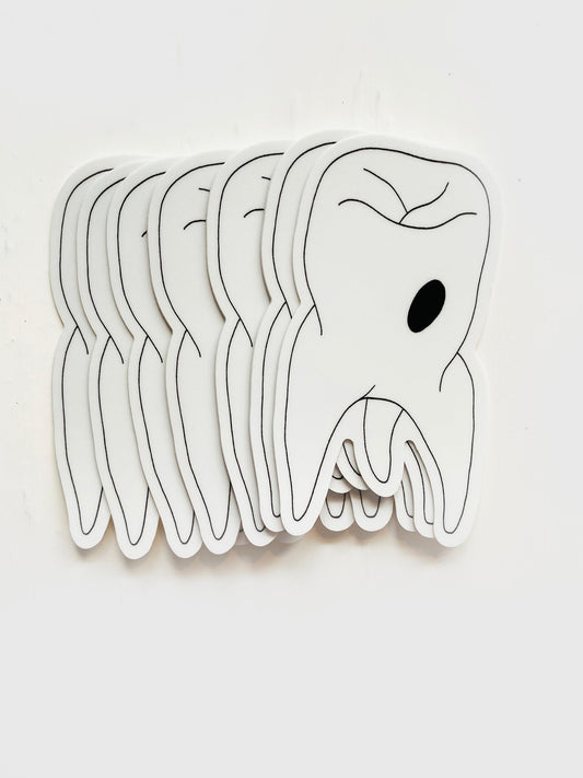 Tooth Waterproof Vinyl Sticker, 1.7” x 3”