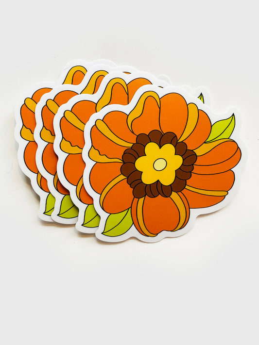 Retro Flower Waterproof Vinyl Sticker, 3” x 3”