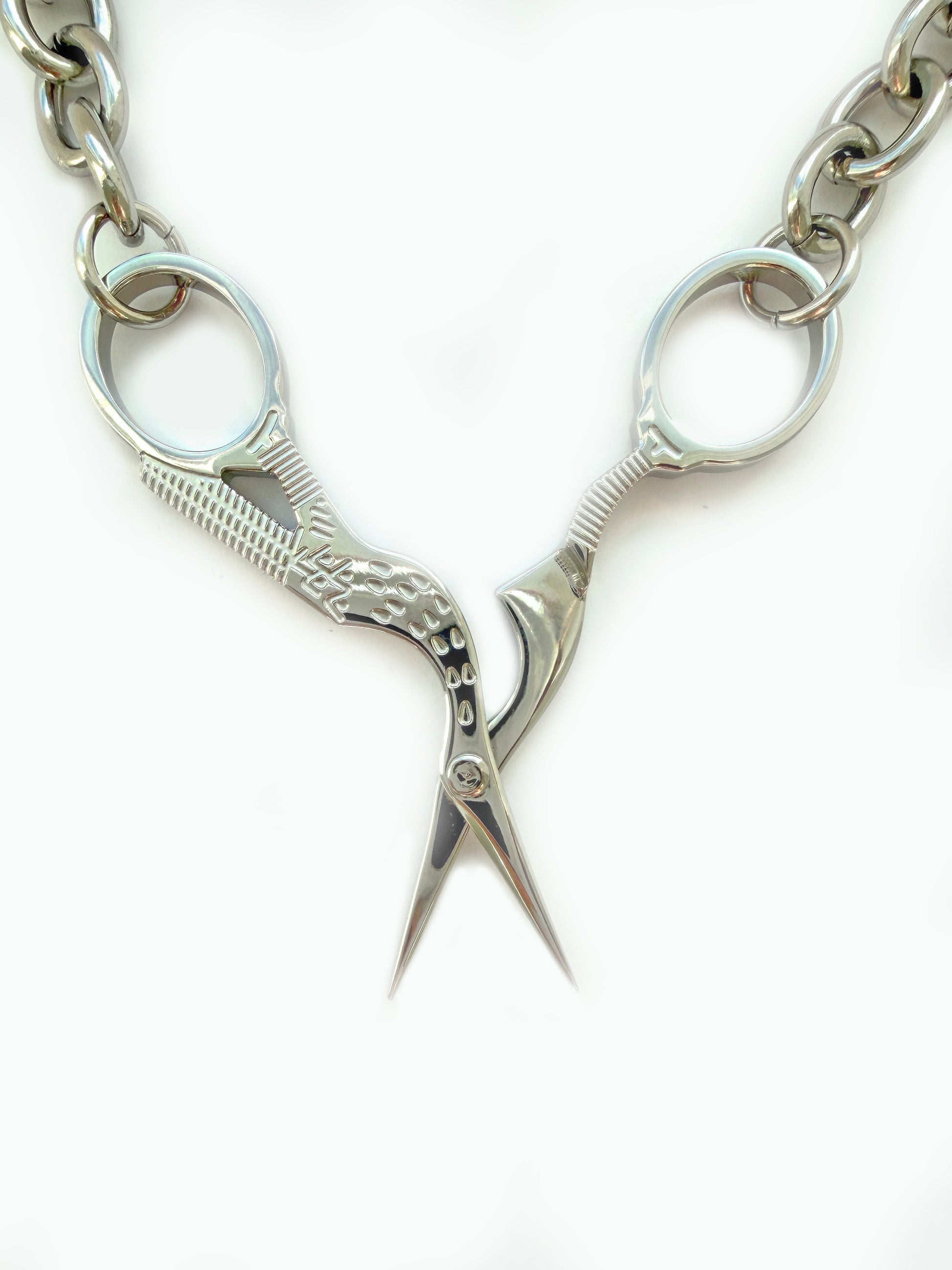 Stork Scissor Necklace in Silver